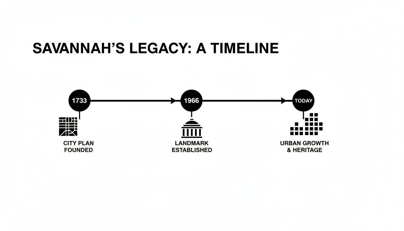 Stepping into Savannah’s historic downtown feels like walking into a meticulously crafted storybook. This city wasn't built by accident; it was born from a brilliant vision. Its foundation is a unique grid system of picturesque public squares, each one a green, park-like centerpiece for the neighborhoods that surround it.